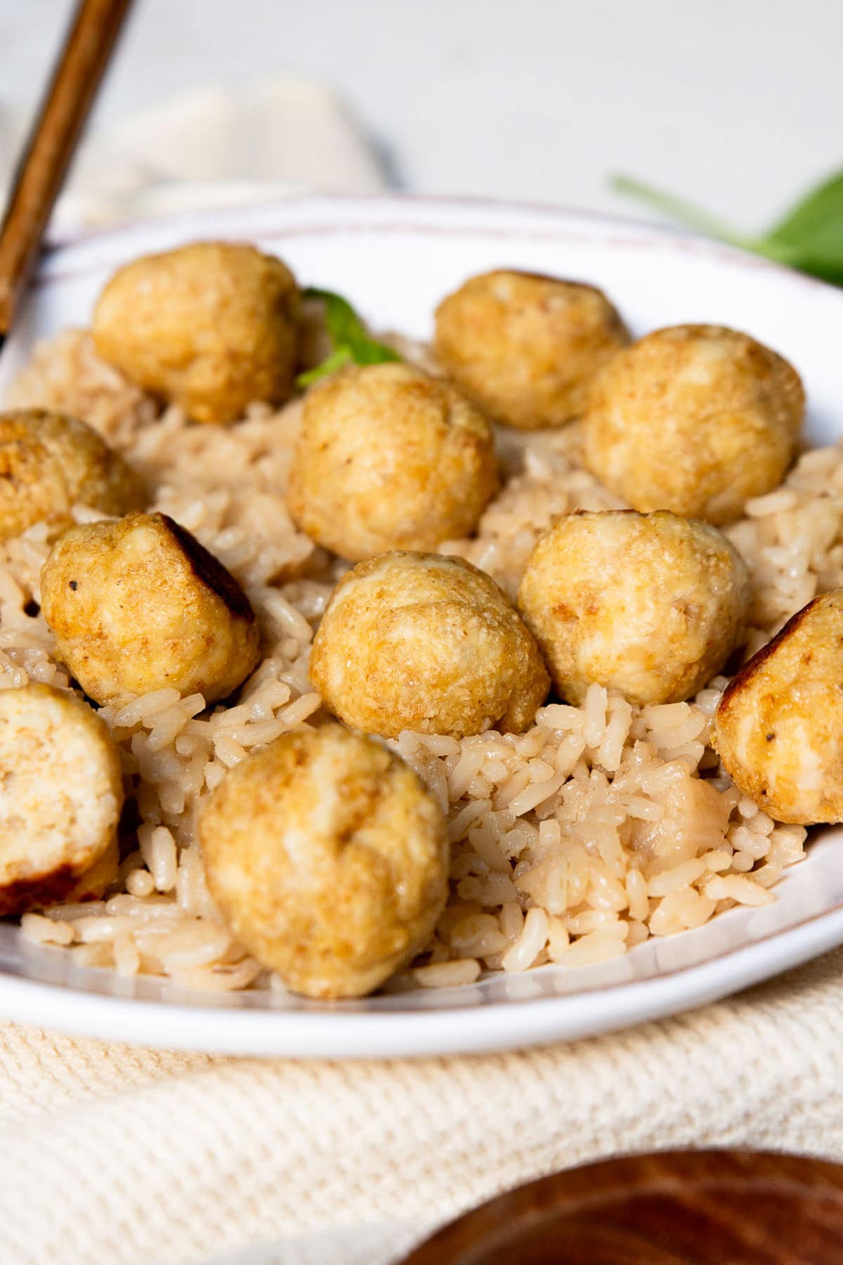 This chicken meatballs recipe is a 30ish minute meal that’s lighter than the classic beef meatballs. You can pair them with rice, toss with spaghetti, enjoy as an appetizer, or turn into marry me chicken meatballs.
